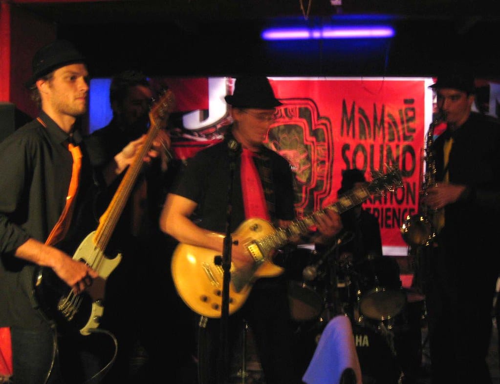 Yuppienomad, her friend Sharon and I crossed the river again on Saturday night to party with the entire expat community in Hanoi at Barracuda Bar. Mamale, a French ska/jazz/punk rock band was performing in anticipation of their CD release. Formed a year ago at a Hanoi pub, the band now has a devoted (albeit small) following here in Hanoi.