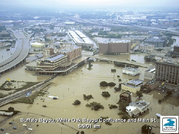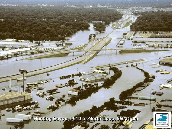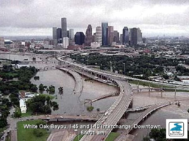 - Houston's perfect storm would feed on late summer's warm waters as it barreled northward across the Gulf of Mexico, slamming into the coast near Freeport.