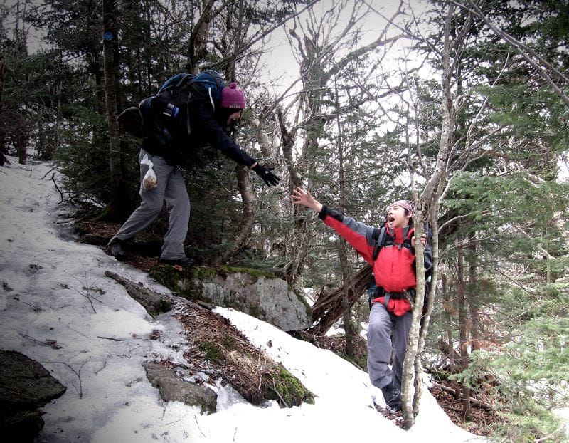 On Sunday, Hamlet and Ink re-enacted a precipitous experience the day before on Slide Mountain, where we encountered ice and inclement drops in elevation during our 'spring' hike to the Catskills, by finding another ledge with ice with a not-so-steep drop.